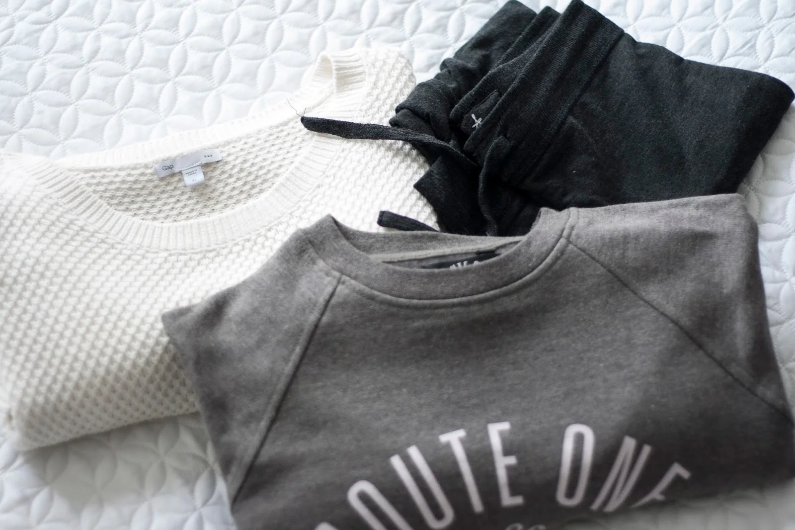 Jumpers & Leisure wear: A knitted jumper is a complete staple for me in the cooler months and even into spring time I still wear them on a daily basis. However I do tend to flock towards the mens section to find the perfect fit for me, even though I am petite my body is quite long so I like something that I can throw on with a pair of leggings and ankle boots so it needs to cover my bum at all times. Then I have my comfy clothes, I work from home so I don't need to wearing my finest when the only people who see me are my dog and dad so mostly I chuck on a pair of skinny joggers or some shorts and a sweatshirt.