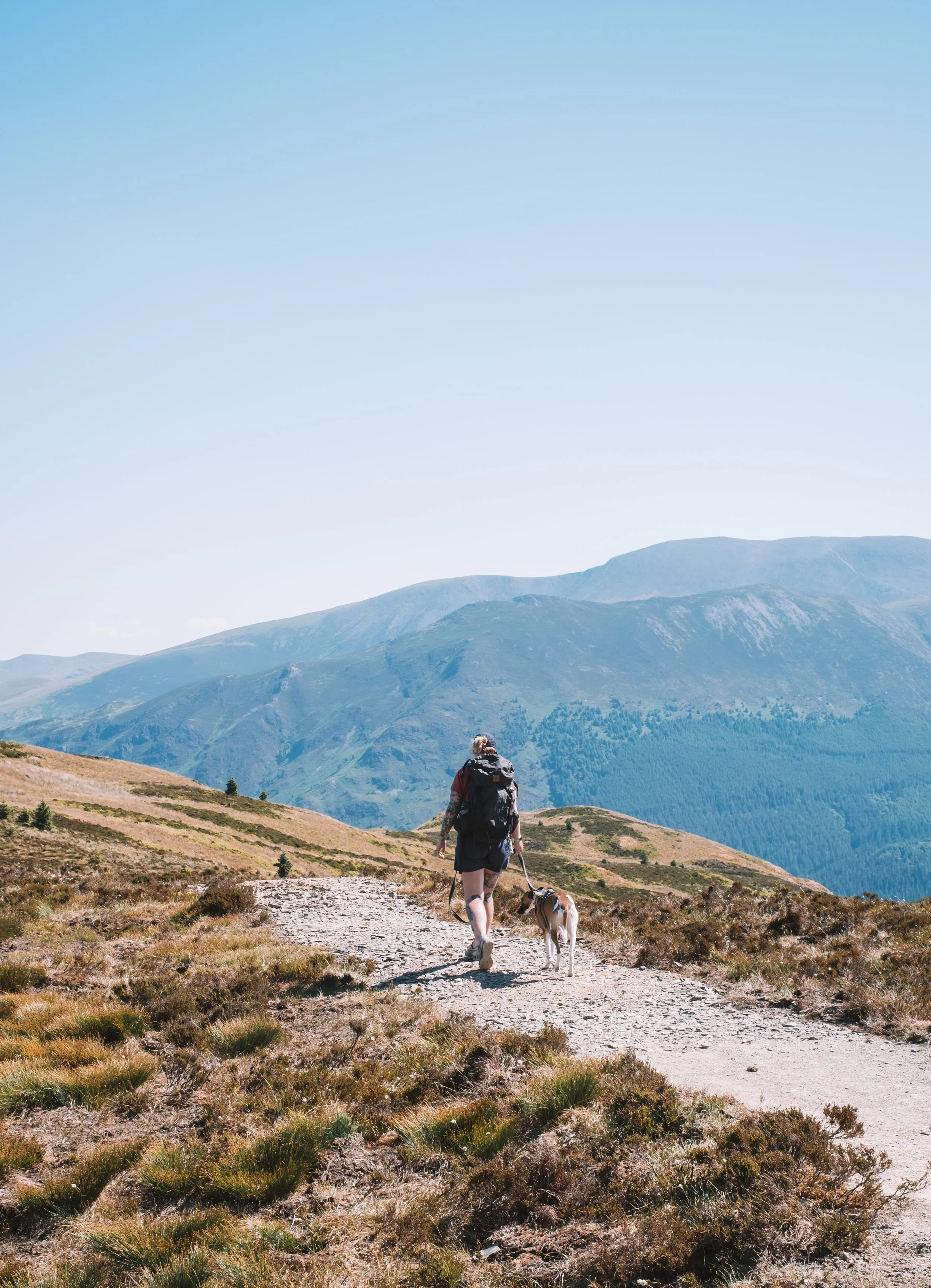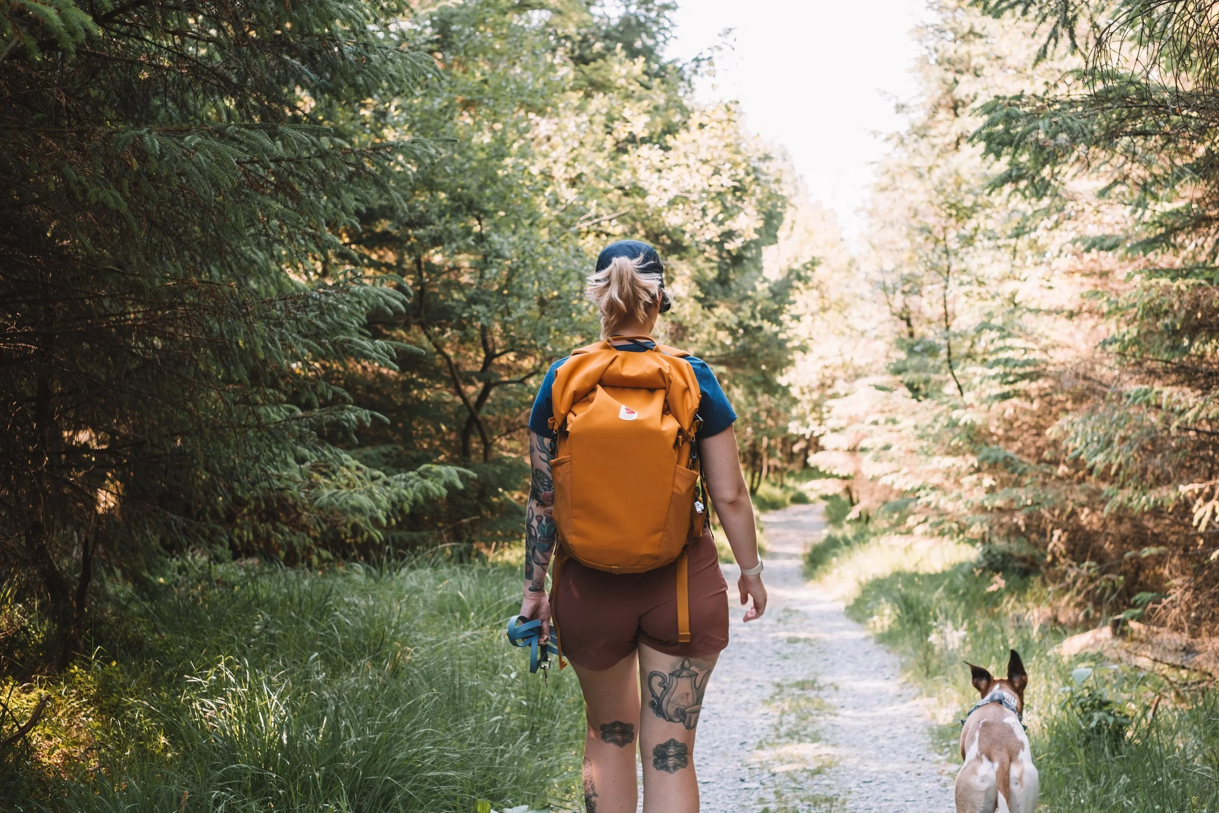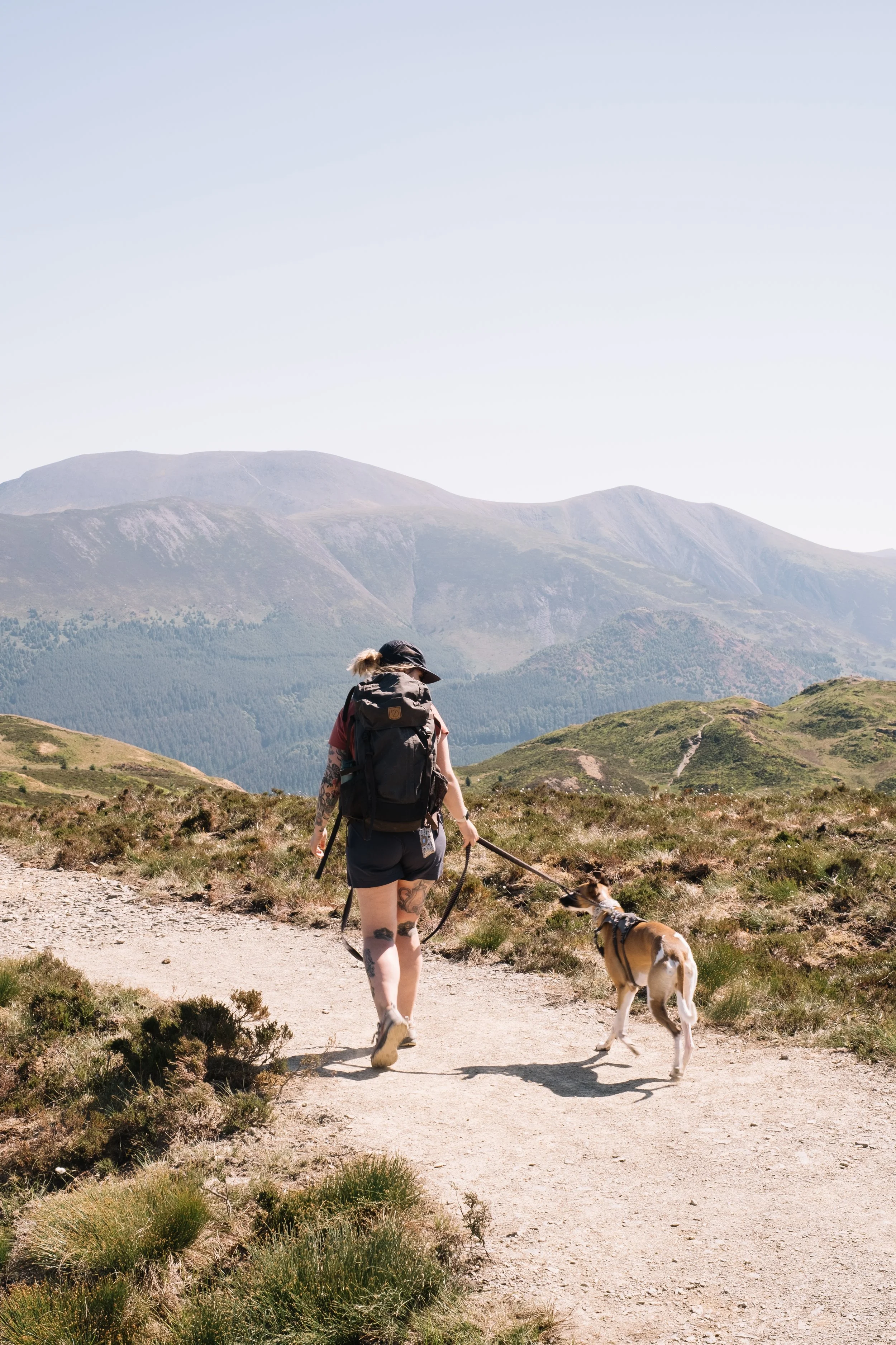 There are a few essentials I like to make sure I always have with me when we’re with the dogs and they’re key for a happy hike. I recently changed my bag to the Fjällräven Kaipak bag as on the hip straps it has two small zippable pockets and they’re perfect for having poo bags and treats easily accessible. Having easy access to food is essential for hikes so we can navigate any sheep or livestock easily and reward any great behaviours. We always make sure we take a waterbottle, we picked up this style from Aldi a few years ago now and they’re perfect as the water goes back inside when your dog is done so you're not messing around with a soggy bowl. The caribiner clip makes it perfect for clipping to the front on your bag for easy access too. Alongisde the obvious essentials always make sure we’ve got a little first aid kid too with a small spray bottle of leucillian and some vet wrap, just incase!